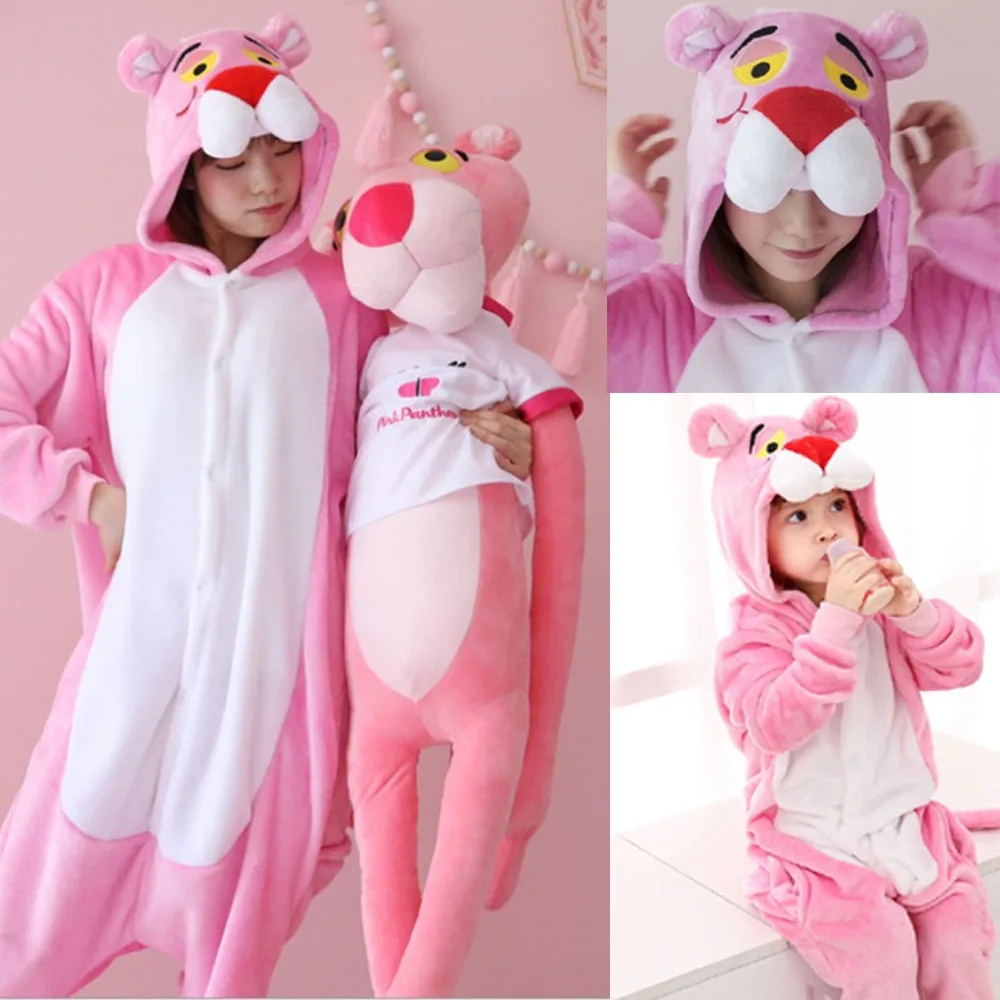 Pink Panther Costumes,Kids Kigurumi Animal pajama Onesies Rabbit Adults Flannel Sleepwear Festival Christmas Party Funny Pajamas